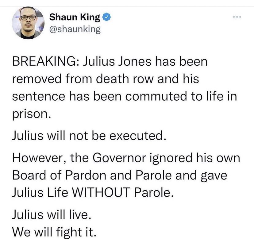 We need to call that number. Julius Jones in Pennsylvania. Stitt commuted Julius death sentence.